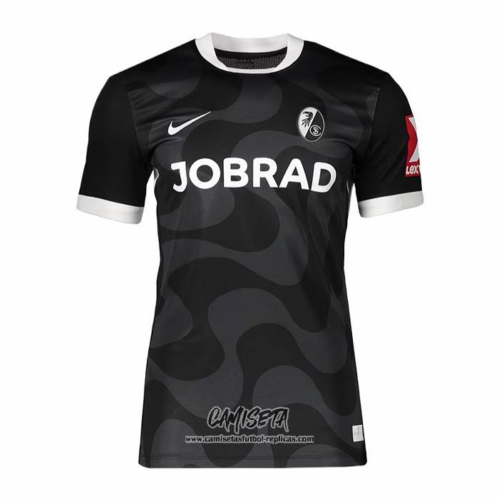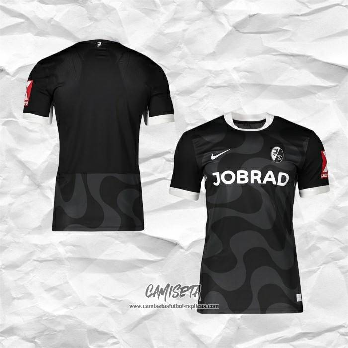 Segunda Camiseta SC Freiburg 2025-2026 Tailandia esta confeccionada con un tejido transpirable que repele el sudor para mantenerte fresco, seco y cómodo dentro y fuera de la cancha. Una replicas camisetas futbol que puedes usar a diario, jugar al fútbol o disfrutar de los partidos con tus amigos sin problemas.