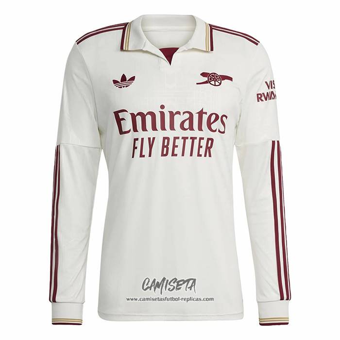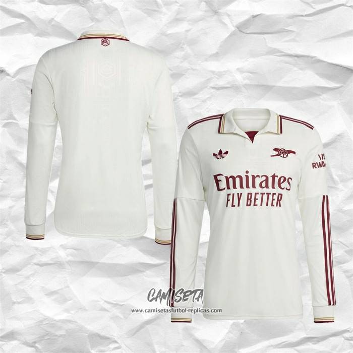 Tercera Camiseta Arsenal 2025-2026 Manga Larga esta confeccionada con un tejido transpirable que repele el sudor para mantenerte fresco, seco y cómodo dentro y fuera de la cancha. Una replicas camisetas futbol que puedes usar a diario, jugar al fútbol o disfrutar de los partidos con tus amigos sin problemas.