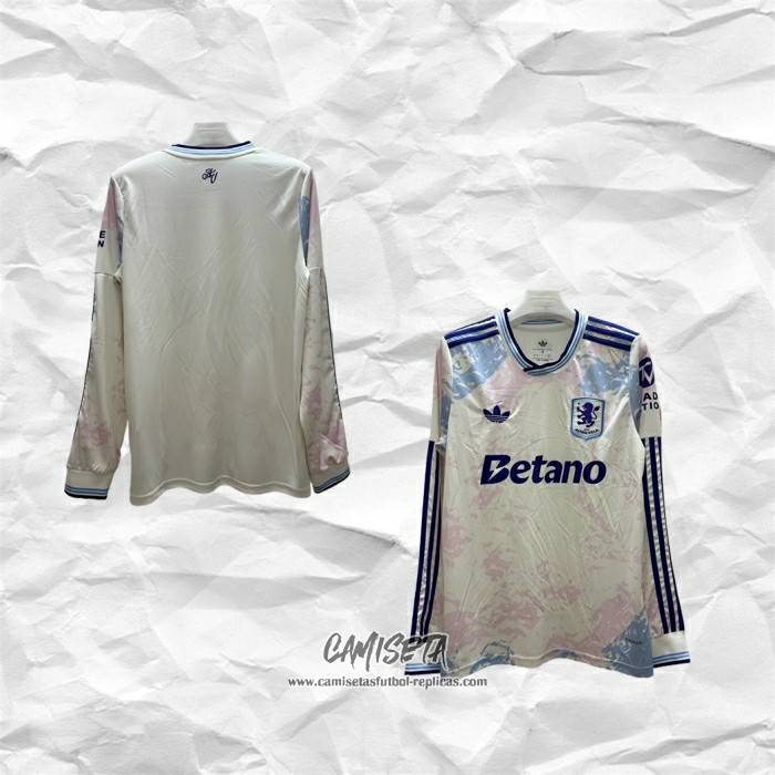 Tercera Camiseta Aston Villa 2025-2026 Manga Larga esta confeccionada con un tejido transpirable que repele el sudor para mantenerte fresco, seco y cómodo dentro y fuera de la cancha. Una replicas camisetas futbol que puedes usar a diario, jugar al fútbol o disfrutar de los partidos con tus amigos sin problemas.