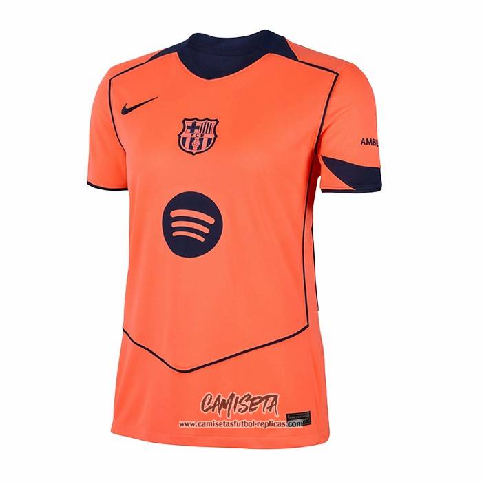 Tercera Camiseta Barcelona 2025-2026 Mujer esta confeccionada con un tejido transpirable que repele el sudor para mantenerte fresco, seco y cómodo dentro y fuera de la cancha. Una replicas camisetas futbol que puedes usar a diario, jugar al fútbol o disfrutar de los partidos con tus amigos sin problemas.