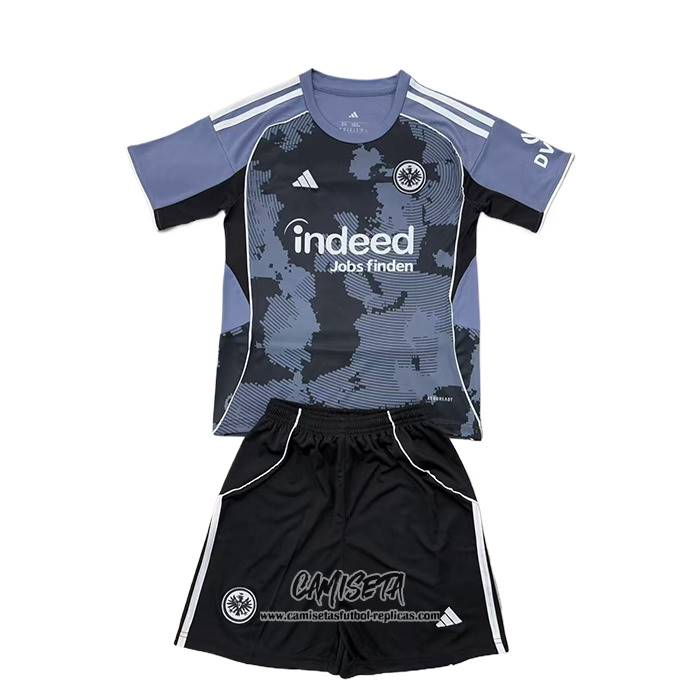 Tercera Camiseta Eintracht Frankfurt 2025-2026 Nino esta confeccionada con un tejido transpirable que repele el sudor para mantenerte fresco, seco y cómodo dentro y fuera de la cancha. Una replicas camisetas futbol que puedes usar a diario, jugar al fútbol o disfrutar de los partidos con tus amigos sin problemas.