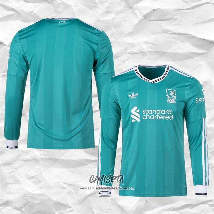 Tercera Camiseta Liverpool 2025-2026 Manga Larga esta confeccionada con un tejido transpirable que repele el sudor para mantenerte fresco, seco y cómodo dentro y fuera de la cancha. Una replicas camisetas futbol que puedes usar a diario, jugar al fútbol o disfrutar de los partidos con tus amigos sin problemas.