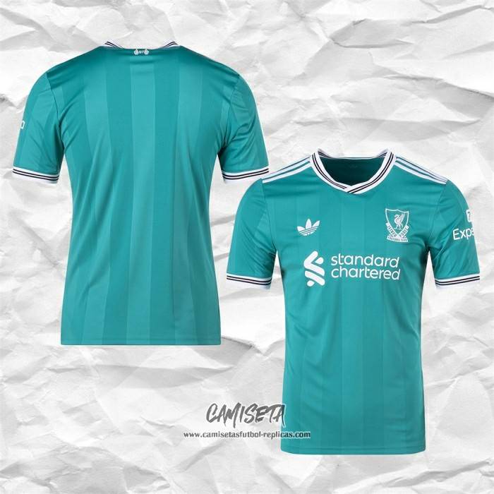Tercera Camiseta Liverpool 2025-2026 esta confeccionada con un tejido transpirable que repele el sudor para mantenerte fresco, seco y cómodo dentro y fuera de la cancha. Una replicas camisetas futbol que puedes usar a diario, jugar al fútbol o disfrutar de los partidos con tus amigos sin problemas.