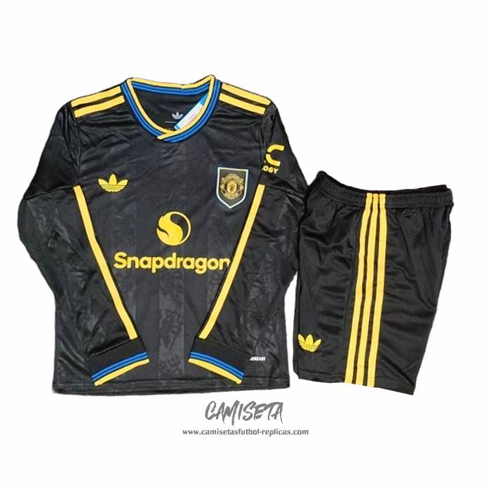Tercera Camiseta Manchester United 2025-2026 Nino Manga Larga esta confeccionada con un tejido transpirable que repele el sudor para mantenerte fresco, seco y cómodo dentro y fuera de la cancha. Una replicas camisetas futbol que puedes usar a diario, jugar al fútbol o disfrutar de los partidos con tus amigos sin problemas.