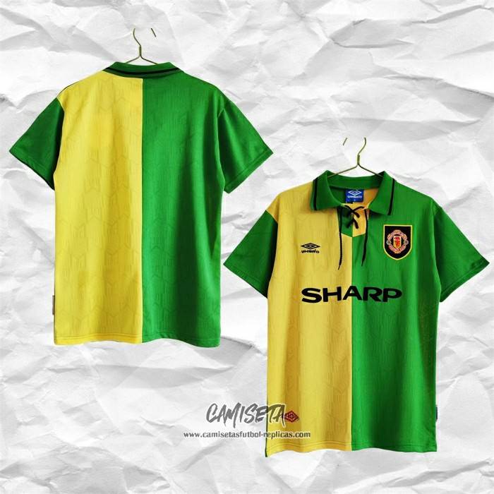 Tercera Camiseta Manchester United Retro 92-94 esta confeccionada con un tejido transpirable que repele el sudor para mantenerte fresco, seco y cómodo dentro y fuera de la cancha. Una replicas camisetas futbol que puedes usar a diario, jugar al fútbol o disfrutar de los partidos con tus amigos sin problemas.